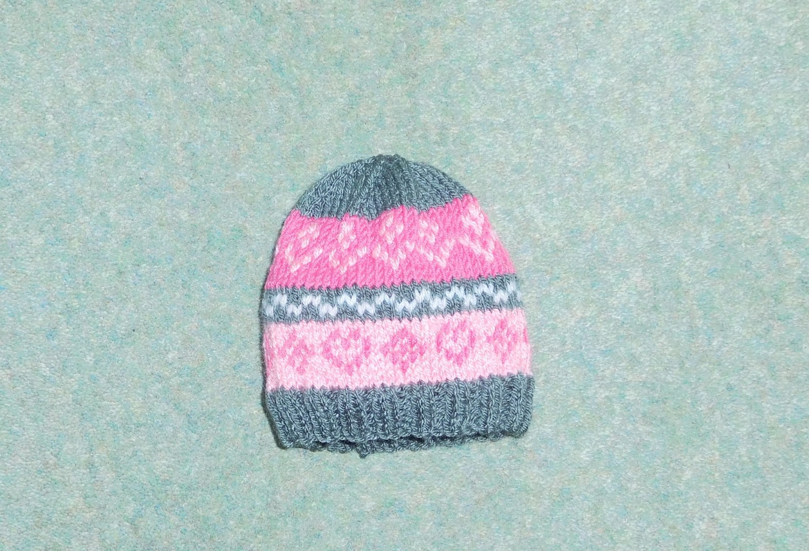 That's three little red cardigans, three children's hats in Sanquhar patterns and two pairs of baby mittens.